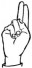 На ћирилици написано РАДНА СРДАНОВИЋ састоји се из 14 слова [?]. Исписано ћириличном једноручном азбуком за глувонеме: